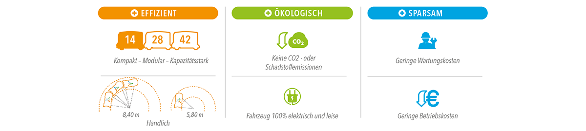 - Automatisiertes mechanisches Kupplungssystem für Einspurbetrieb und kleinen Wendekreis,